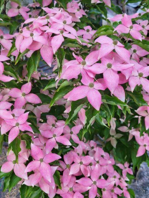 Scarlet Fire Dogwood has become one of the best pink dogwoods known for its disease resistance, deep pink color, and long bloom time! It is a ‘patented’ scarlet red flowering dogwood that is a beautiful sight to see. The Scarlet Fire Dogwood is a deep Pink and flowers last 3 – 4 weeks in May/June.
