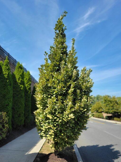 This Kindred Spirit Oak is a very handsome columnar oak that brings you the gorgeous oak leaves in a smaller vertical narrow form. It is a very fascinating tree to fit into narrow places, and is an amazing tree to be appreciated up close.